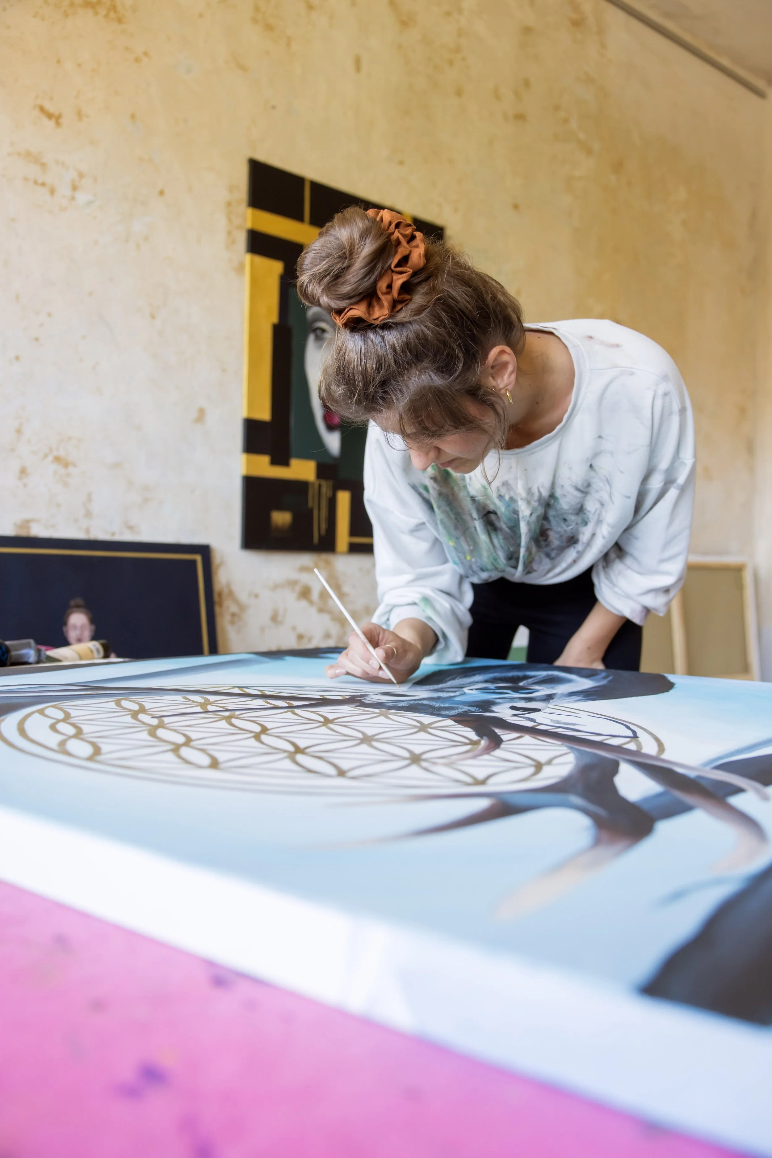 Carinas Kunststil verbindet eine faszinierende Präzision mit spürbarer energetischer Tiefe. Ihre detailreichen und fein ausgearbeiteten Werke erzeugen einen realistischen Effekt, teilweise ergänzt durch surrealistische Elemente, welche das Unsichtbare sichtbar machen. Besonders Gold spielt eine zentrale Rolle, symbolisiert es doch Transformation, Heilung und die Verbindung zum Göttlichen. Ihre Bilder spiegeln so innere Prozesse wider, die zunächst unsichtbar bleiben, bevor sie kraftvoll ins Leben treten – eine eindrucksvolle Metapher für die Verwirklichung persönlicher Träume und Visionen.
